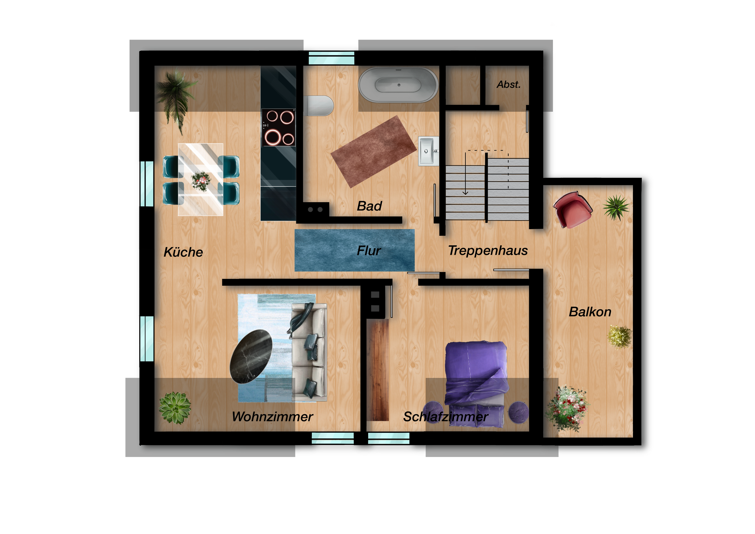 Die Gesamtwohnfläche des Hauses beträgt rund 190 m², verteilt auf zwei großzügige Zwei-Zimmer-Wohnungen im Erd- und Obergeschoss mit jeweils etwa 70 m² sowie eine weitere Zwei-Zimmer-Wohnung im Dachgeschoss mit rund 50 m². Alle drei Wohnungen befinden sich in einem gepflegten, modernisierten Zustand und sind vollständig vermietet. Die Mieterstruktur ist stabil – ein Aspekt, der Kapitalanlegern ein hohes Maß an Planungssicherheit bietet. Aufgrund der durchdachten Grundrisse, der ruhigen Lage und der ansprechenden Ausstattung besteht auch für zukünftige Vermietungen ein attraktives Potenzial.